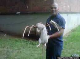 | JOSE RIVERA membunuh seekor tikus gergasi dengan menggunakan serampang peladang di kawasan perumahan Marcy di Brooklyn, New York semalam. |